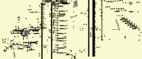 The 323 has a 32x32 1-bit colour display, which can be written to by the CPU one column at a time. It cannot be read. The least significant bit of a word goes at the top. Columns are numbered left-to-right, with the left-most being 0 and the right-most being 31. It works by sending LWSSes through a square region, which align to a square grid perfectly every 2048 generations. Note that they are not aligned properly at t=0, but become aligned at t = n * 2048 + 1664, for any n.