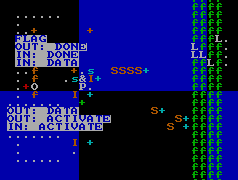 All peripherals must produce DONE signals in response to ACTIVATE inputs, otherwise the machine will halt forever, since all I/O is blocking. The 13 I/O pins at the bottom of the machine, as found in the .mc file provided with this documentation, have a kind of "null peripheral" that simply un-blocks the machine but does nothing else.
